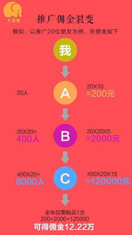 A推廣了B。20乘20等于400人。20乘20再乘以5元的分潤(rùn),等于2000元。zn1菜譜美食網(wǎng)-眾歸云 - 24小時(shí)不關(guān)機(jī)的云端電腦_云主機(jī)_VPS掛機(jī)寶_免費(fèi)掛機(jī)寶_0.1元試用,3-5元月租服務(wù)器提供