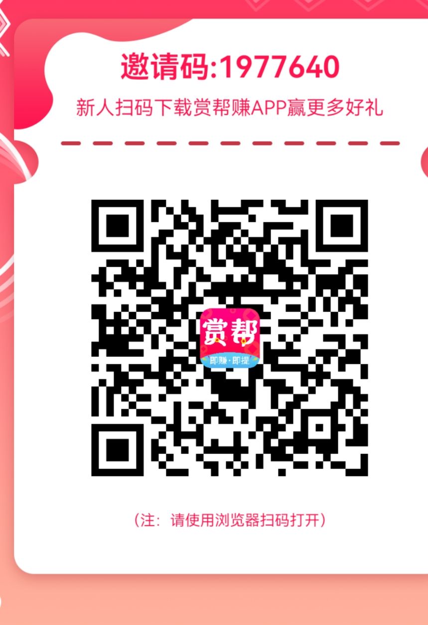 掃碼下載賞幫賺 填寫邀請碼 1977640 收益翻倍