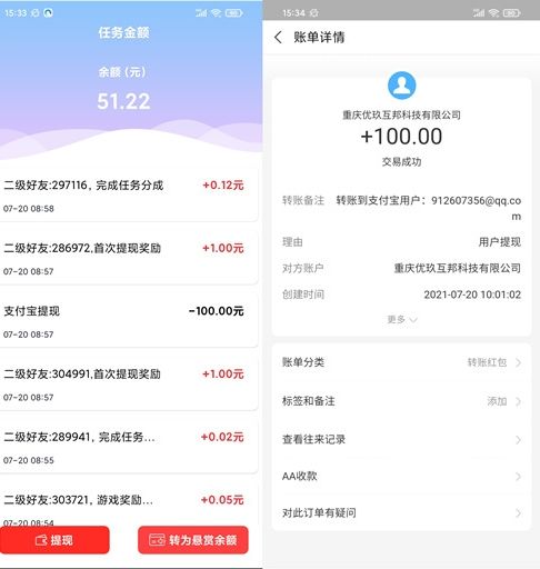 到賬圖如上,平臺滿一元就可以體線的,門檻還是很友好的,而且平臺做任務(wù)掙的錢,體線是沒有手續(xù)費(fèi)的!可以說賞幫賺平臺為了吸引用戶,福利給的足夠多!相對于一些老平臺而言,用戶數(shù)量雖然不是很多,但傭金獎勵給的都比較高??傊?,賞幫賺APP是今年新出選賞平臺里面能拿得出手的,掙錢很靠譜!