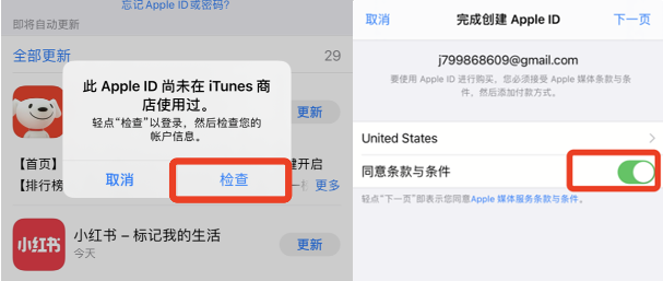 1、進入AppStore,將原有賬戶退出,登錄剛剛注冊好的賬戶。由于是新ID,所以會出現(xiàn)以下提示,請點擊檢查,勾選同意,進入下一頁;9Ka菜譜美食網-眾歸云 - 24小時不關機的云端電腦_云主機_VPS掛機寶_免費掛機寶_0.1元試用,3-5元月租服務器提供
