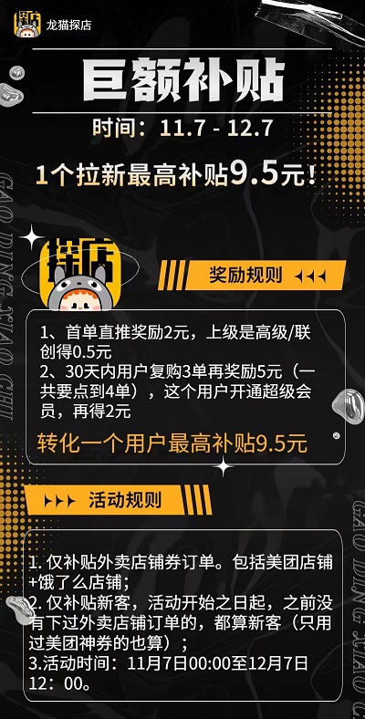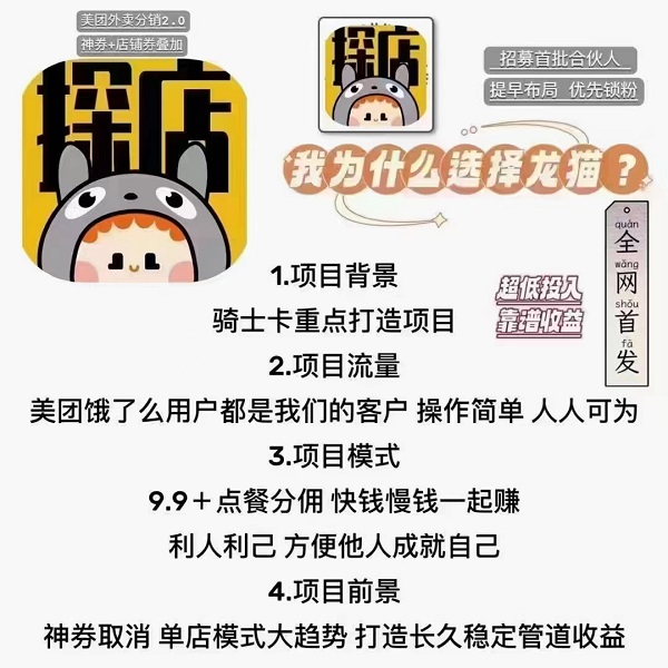 因?yàn)槟壳皝?lái)說(shuō),龍貓?zhí)降赀@套模式是全網(wǎng)唯一,與美團(tuán)直接合作,獨(dú)家福利。