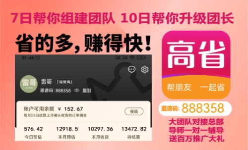 本文作者:高省,雷哥導(dǎo)師最大團(tuán)隊(duì)&聯(lián)合創(chuàng)始人(65141479),10年網(wǎng)絡(luò)經(jīng)驗(yàn),高省邀請碼888358 ,有興趣在高省掙米,可以在后臺聯(lián)系我高省APP,免費(fèi)送精準(zhǔn)引流技術(shù)+百度霸屏技術(shù),1對1扶持,助你打造百萬團(tuán)隊(duì)!