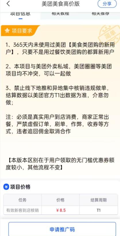 簡(jiǎn)單說(shuō)這個(gè)項(xiàng)目不需要美團(tuán)新用戶,只需要用戶之前沒(méi)有試過(guò)使用團(tuán)購(gòu)功能都是符合要求的,用戶掃碼可以領(lǐng)取團(tuán)購(gòu)的優(yōu)惠券(本來(lái)團(tuán)購(gòu)優(yōu)惠券就遠(yuǎn)遠(yuǎn)比外面優(yōu)惠券更加稀缺),然后到店核銷下單就可以獲得相應(yīng)傭金,算是一個(gè)非常剛需性的推廣項(xiàng)目了!SgE菜譜美食網(wǎng)-眾歸云 - 24小時(shí)不關(guān)機(jī)的云端電腦_云主機(jī)_VPS掛機(jī)寶_免費(fèi)掛機(jī)寶_0.1元試用,3-5元月租服務(wù)器提供