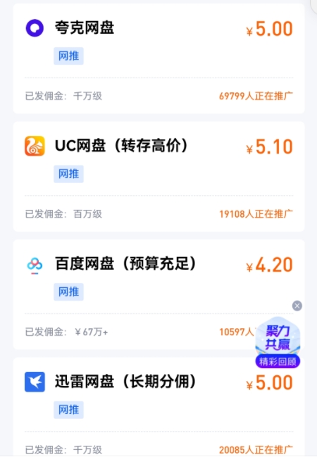 迅雷網(wǎng)盤推廣的優(yōu)勢(shì)在于其顯著的綜合利潤(rùn)收益。通過(guò)推廣迅雷網(wǎng)盤,您不僅可以獲得用戶注冊(cè)和使用的收益,還可以獲得用戶付費(fèi)轉(zhuǎn)化的豐厚回報(bào)。此外,迅雷網(wǎng)盤還提供了豐富的推廣資源和支持,如優(yōu)惠券、活動(dòng)支持等,幫助您更好地吸引和留住用戶。