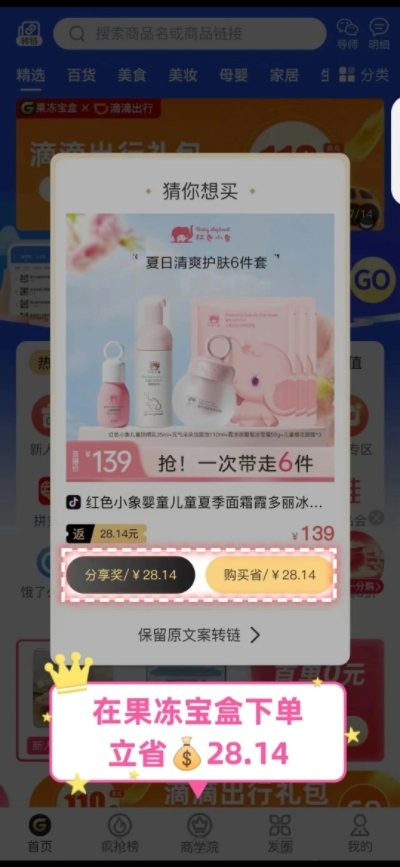 除了社交分享功能外,果凍寶盒APP還提供了豐富的購物返利服務(wù)。用戶可以在APP上領(lǐng)取主流商城的商品隱藏優(yōu)惠券,享受購物返利的優(yōu)惠。以蘭蔻面霜為例,這款面霜在天貓自營店的活動(dòng)價(jià)格為1150元,但用戶通過果凍寶盒APP領(lǐng)取大額隱藏優(yōu)惠券后,價(jià)格可能降至985元。再加上店鋪優(yōu)惠,用戶可以享受折上折最低價(jià)購買,從而節(jié)省大量資金。這種購物返利的方式不僅讓用戶享受到了實(shí)實(shí)在在的優(yōu)惠,還讓他們能夠在購物過程中積累一定的傭金和獎(jiǎng)勵(lì),實(shí)現(xiàn)購物與收益的雙重回報(bào)。