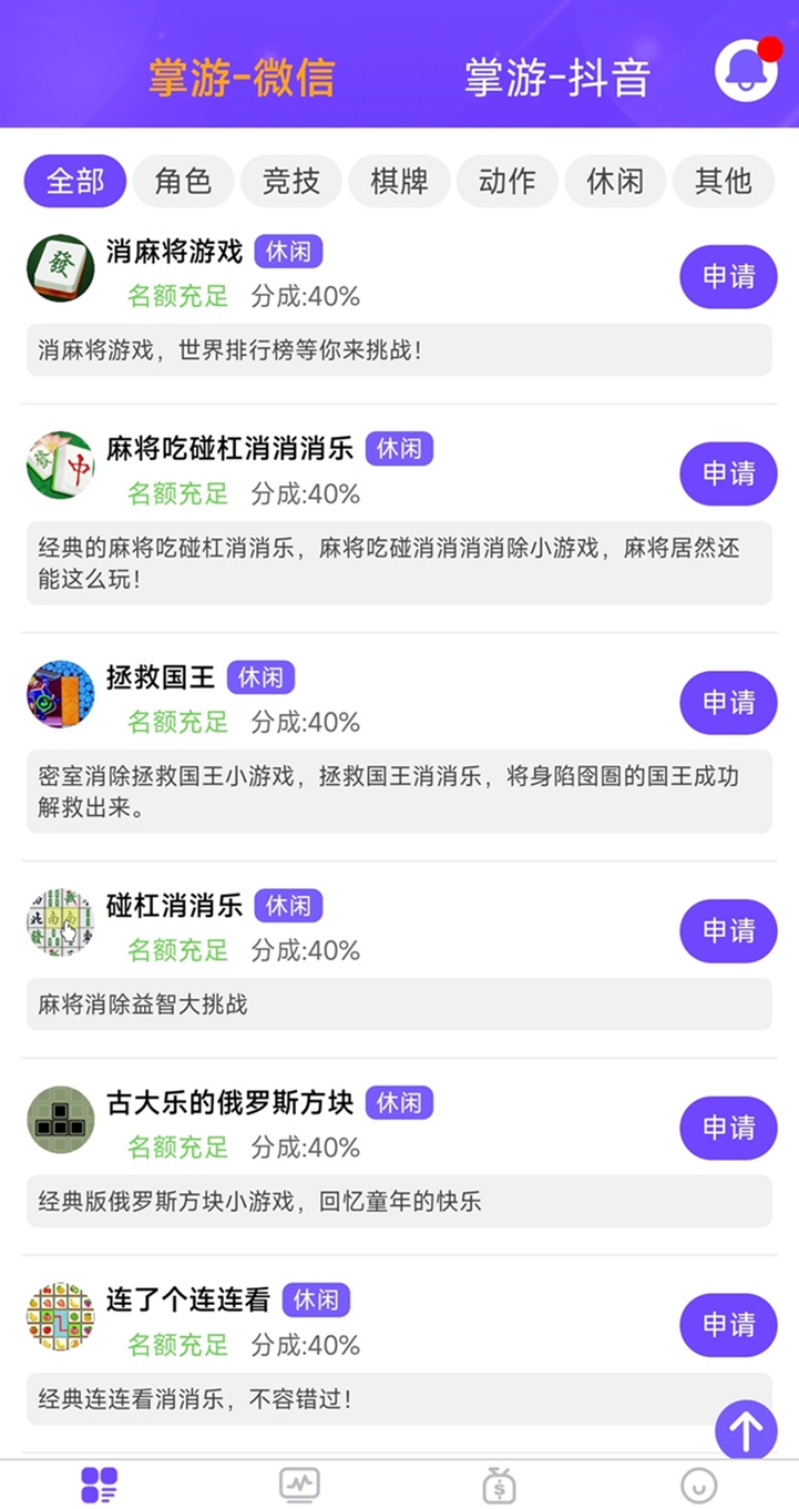 這里我們可以選擇自己感興趣的游戲進行申請,掌游推廣助手邀請碼是cps520155,不過最好選擇分成百分之四十的,這樣收益才最大化。然后點擊右下角“我的”,找到“我的推廣鏈接”。4vn菜譜美食網(wǎng)-眾歸云 - 24小時不關機的云端電腦_云主機_VPS掛機寶_免費掛機寶_0.1元試用,3-5元月租服務器提供
