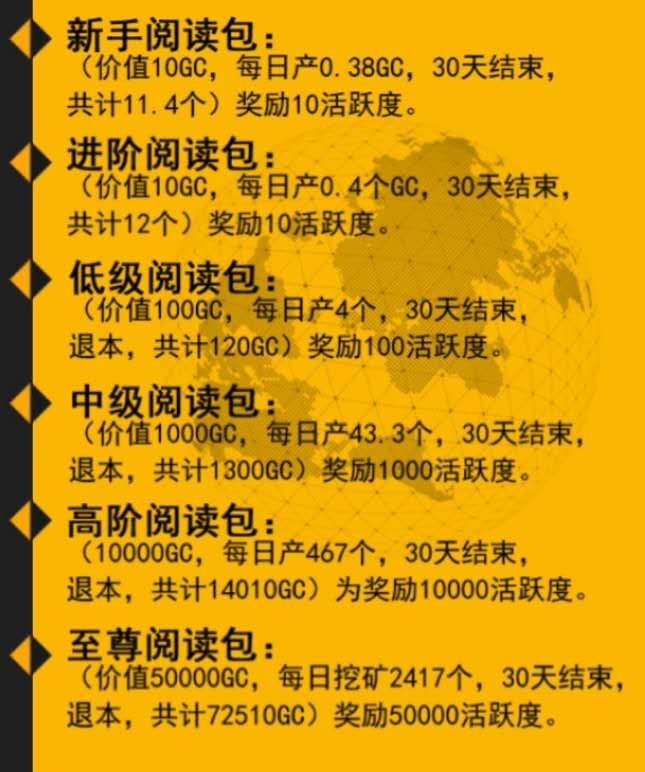 不難看出,公司這一制度在很大程度上,防止了大量泡沫的發(fā)生,并且利用份葒的形式,獎勵這些推廣的會員,并且GE不僅可以份葒 GE還可以兌換閱讀包,如何獲得GE呢?直推就可以了,直推的越多,你的GE也就越多,不僅可以份葒到GC(直接變現(xiàn)),還可以利用GE購買閱讀包,產(chǎn)出更多的GC!